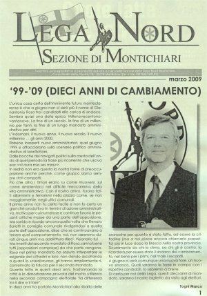 La cosa più interessante di questa campagna elettorale di fatto ormai partita è … che non c’è! Ovvero : senza andare ai vecchi tempi alla Peppone contro Don Camillo, è da un bel po’ che le elezioni vengono vissute sostanzialmente in TV e semmai sui giornali (per chi ancora li legge). Come dire che alla fine, nelle ultime 48 ore (se non 24) l’elettore deciderà in base a cosa gli capiterà d’incontrare sulla strada dei propri impegni. E’ stato praticamente inutile tutto il lavoro fatto da “Cittadini per l’Attenzione” perché l’attenzione è stata davvero scarsa e il Cittadino con la “C” maiuscola, ha deciso per sua colpa di essere solo cittadino con la “c” minuscola, numerino tra i tanti da considerare solo in fase elettorale, e non persona che con spirito civico si informa, analizza, confronta. Poi magari al bar o nelle chiacchiere con gli amici esce lo slogan “Tanto iè tocc precis!” (tanto son tutti uguali) oppure, se si criticano gli attuali amministratori, “Erano così anche quelli di prima!”. Nessuna analisi e solo prese d’atto; ne deriva che per forza di cose la valutazione prima di recarsi alle urne non riguarderà, purtroppo, la valutazione delle cose fatte/non-fatte o i programmi di chi si candiderà a sostituire Rosa, ma la faccia e la personalità pubblica, leggibile, delle persone in lista, siano esse novità o meno. Intanto è in vista la candidatura di Elena Zanola, con accanto come capolista Gianantonio Rosa; il regista Gelmini guiderà la Lega locale ad una non-intesa col Popolo delle Libertà, così da avere mano libera nel gestire il tentativo di fare man bassa al primo turno, senza andare al ballottaggio costretto a trattare con qualcuno (chi????). In altre e più chiare parole esemplificatrici: se la Lega non accettasse dictat da Brescia-Milano-Arcore per un accordo che lasci al PdL il posto di nuovo Sindaco di Montichiari (in virtù del bilanciamento con la candidatura del leghista Molgora al ruolo di Presidente della Provincia), allora la stessa Lega monteclarense si sentirebbe in grado di tentare da sola l’assalto alla poltrona di Primo Cittadino, lasciando probabilmente al PdL il ruolo di debole contrasto al ballottaggio con un proprio candidato alternativo.