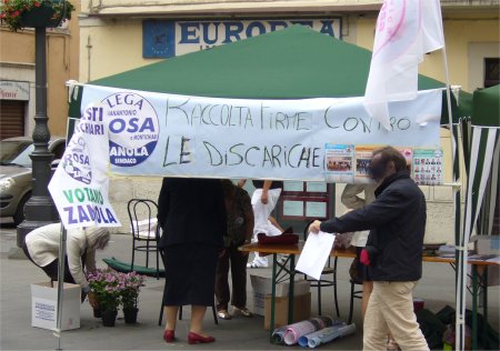 Non scriviamo per non incorrere in banalità di quelle imprecisioni che accompagnano i discorsi di Tizio e Caio (o Tizia e Caia), tutti fatti di “faremo” e “non faremo” e magari si tratta di materie non prettamente comunali e quindi non gestibili da un Sindaco. Vi è infine il caso molto pusillanime delle improvvide e tardive raccolte firme che qualcuno sta facendo attorno a materie popolari quali quella ambientale. Oggi, domenica 31 maggio, in piazza Garibaldi, la Lega per Gianantonio Rosa ha raccolto firme, sino ad una certa ora, “Contro la discarica Gedit [ovvero Gabana])” e quindi, non molti minuti dopo, nello stesso luogo e sotto lo stesso striscione, “Contro le discariche”. Nelle fotografie è chiara la mistificazione, con la correzione fatta al citato striscione con manifestini incollati a coprire la parola “Gedit”. Ci chiediamo se le firme della prima ora siano state ritenute valide anche per la seconda ora, ovvero se i firmatari abbiano siglato un testo contro il solo Marcello Gabana o se invece tutti abbiano inteso firmare contro ogni impianto di smaltimento, compresi quelli accettati o tollerati dalla Amministrazione Rosa. Ci è capitato di sentire in diretta la signora Zanola dichiarare che questa uscente amministrazione non ha aperto nessuna nuova discarica e che quelle che ci sono, 2, sono state aperte da Badilini (padre). Ha anche detto che la dimostrazione che Rosa è contro le discariche sta nel fatto che la sua Giunta ha ricorso persino al Presidente della Repubblica contro la domanda di autorizzazione della Gedit del patron della Pallavolo Gabeca-Paradiso. Noi ci chiediamo invece perché il ricorso (inutile) contro Gedit e porte aperte invece agli impianti della Systema e ci chiediamo perché si ciurla nel manico su Cava-Verde (aperta sì ai tempi di Giliolo Badilini ma raddoppiata con la sola firma di Rosa) mentre con la società “Montichiari Ambiente”, di cui il Comune detiene il 20%, si fa domanda per aprire una nuova discarica per rifiuti solidi urbani a lato della prima discarica. Tutti gli imbrogli dovrebbero però alla fine venire a galla, ma il dubbio nasce dalla voglia dei cittadini di farsi parte diligente affinché alla verità ci si arrivi con documenti davvero inoppugnabili e confronto faccia a faccia che, pare, Zanola non intende fare. Abbiamo già avuto modo di verificare il lavaggio del cervello di tanta parte dei candidati consiglieri, che pensano che tutto va bene e che le malelingue saranno sconfitte. Speriamo che gli elettori invece sappiano, in questi ultimi giorni, fare domande precise e pretendere risposte precise, insomma che si decidano a non farsi considerare dei poveri creduloni da mantenere nell’ignoranza.