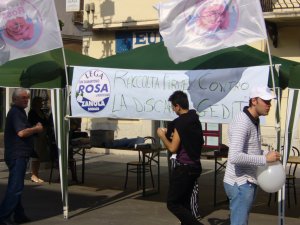 IMMAGINI DALLA CAMPAGNA ELETTORALE Il prima e il dopo: a distanza di pochi minuti gli striscioni delle civiche leghiste vengono rivisti; all'inizio sono contro la discarica Gedit di Gabana e alla fine genericamente contro le discariche. Magari tutta la vicenda del volley non sarà legata al pro/contro discarica ma certo l'Amministrazione non ha proprio cercato un rapporto chiaro e amichevole col presidente della pallavolo Marcello Gabana ...